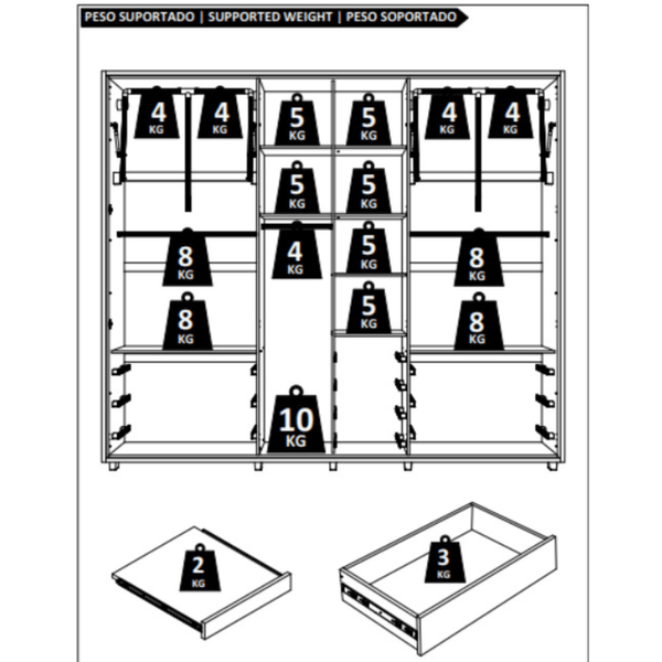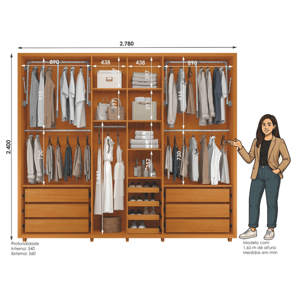 Destaque para os cabideiros extensíveis, que garantem organização inteligente e fácil acesso às roupas, tornando sua rotina mais prática e confortável.