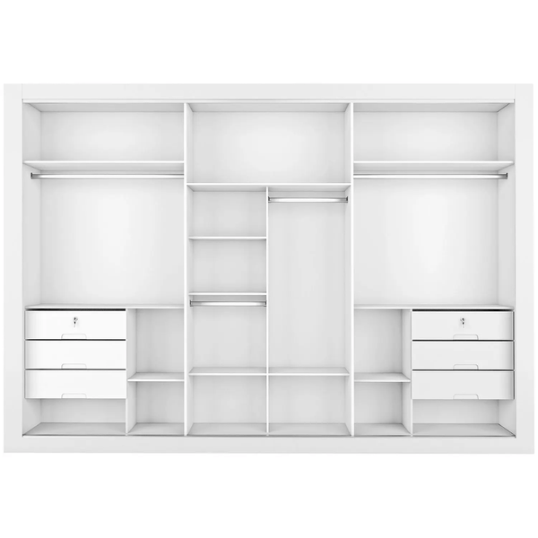 Fabricado em estrutura 100% MDF, o guarda-roupa garante durabilidade, resistência e ótimo custo-benefício. São 6 gavetas espaçosas, com corrediças telescópicas que proporcionam um deslizamento suave e silencioso, ideal para o uso diário.